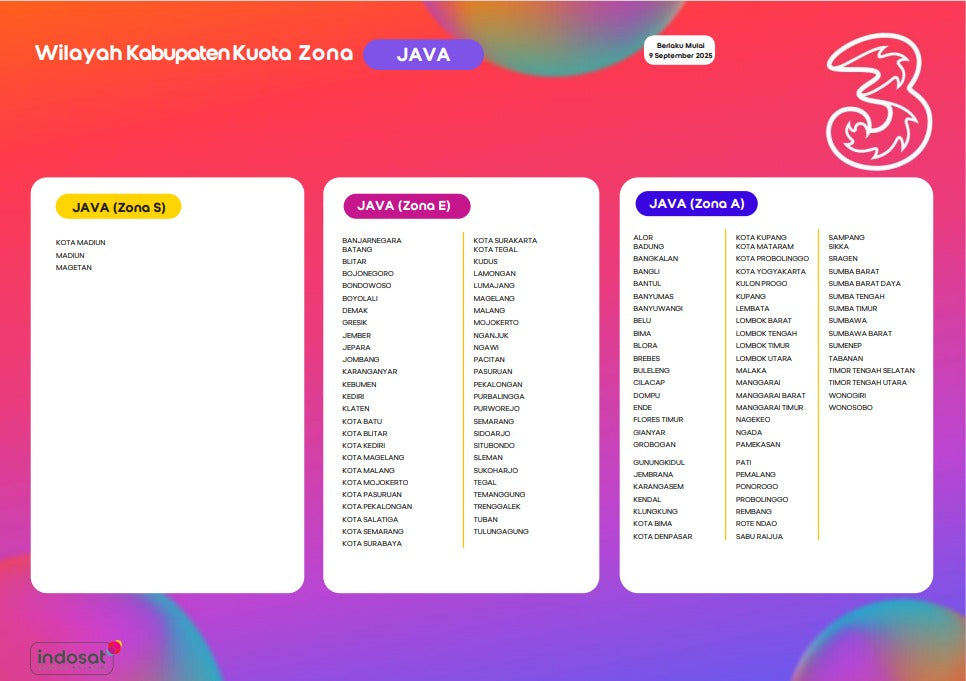 Voucher Kuota Data 3 / Three / Tri AON 1 Jatim-Jateng NEW total (3GB)